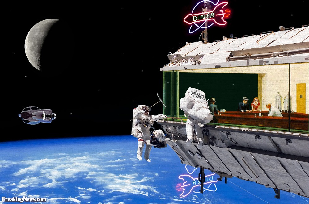 A second key contentious point is the role of private companies and national governments in space. The drive for space exploration was mostly led by governmental agencies since the very beginning, and currently a “virtual government space monopoly” exists.  In the US, National Aeronautics and Space Administration was created in 1958 to coordinate the government’s efforts to explore space.  The exploration itself is also closely linked to military endeavors, with intelligence gathering as one of the early reasons for the launching of satellites. Some argue that we should limit the role of governments and private interests in space and place exploration under the firm control of national governments, while others believed that we should open up space for commercial endeavors and to utilize space as much as possible.Edward-Hopper-s-Nighthawks-in-Space